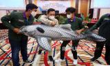 Dokter hewan dari asosiasi Indonesia Aquatic Megafauna - Flying Vet (I AM Flaying Vet) Indonesia Agus Jaenudin (kiri) memberikan pelatihan teknik penanganan mamalia laut yang terjerat jaring dan terdampar di Banda Aceh, Aceh, Senin (1/11/2021). Pelatihan yang diselenggarakan Fakultas Kedokteran Hewan Universitas Syiah Kuala yang juga difasilitasi I AM Flying Vet dan Balai Pengelolaan Sumberdaya Pesisir dan Laut (BPSPL) wilayah Padang Satker Aceh itu sebagai upaya perlindungan dan pelestarian mamalia laut di Indonesia. (FOTO : ANTARA/Irwansyah Putra/aww.)