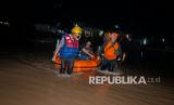 REPUBLIKA.CO.ID, LEBAK -- Petugas mengevakuasi warga yang terjebak banjir di Rangkasbitung, Lebak, Banten, Senin (1/11/2021). Berdasarkan data BPBD Kabupaten Lebak sebanyak 114 rumah di Rangkasbitung terendam banjir hingga setinggi 1,5 meter usai hujan deras disebabkan buruknya drainase yang tersumbat akibat air bercampur material lumpur dan kayu.