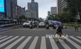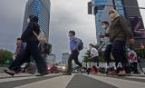 REPUBLIKA.CO.ID, JAKARTA -- Warga menyeberang di zebra cross di Jalan Jenderal Sudirman, Jakarta, Selasa (2/11/). Pemerintah telah menetapkan Pemberlakuan Pembatasan Kegiatan Masyarakat (PPKM) level 1 untuk Provinsi DKI Jakarta hingga 15 November 2021 mendatang.