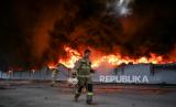 REPUBLIKA.CO.ID, SERANG -- Petugas pemadam kebakaran berusaha memadamkan api yang membakar pabrik korek api di Pakuhaji, Kabupaten Tangerang, Banten, Selasa (2/11/2021). Kebakaran yang belum diketahui penyebabnya tersebut masih dalam penyelidikan kepolisian.