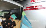 Warga mengurus administrasi kependudukan melalui mobil keliling Adminduk Kota Yogyakarta di Kemantren Mergangsan, Yogyakarta, Rabu (3/11). Mobil keliling Adminduk ini melayani pencetakan KTP yang rusak atau hilang. Layanan ini berpindah setiap sebulan sekali di setiap Kemantren atau kecamatan. Bagi warga jni sangat membantu terutama saat pandemi Covid-19, warga tidak perlu datang ke Disdukcapil Kota Yogyakarta. (FOTO : Wihdan Hidayat / Republika)