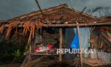 REPUBLIKA.CO.ID, LEBAK -- Ibu Suku Baduy Luar menggendong anaknya melintas di sekitar gubuk sementara di Kampung Cihuni, Lebak, Banten, Rabu (3/11/2021). Sebanyak 16 rumah yang sebelumnya terkena musibah kebakaran pada Rabu (13/10/2021) tersebut pembangunannya masih menunggu waktu kalender adat sunda yang akan dilaksanakan pada Silih Mulud atau bulan Rabiul Akhir yaitu akhir November 2021.
