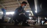 REPUBLIKA.CO.ID,JAKARTA -- Petugas Dinas Lingkungan Hidup DKI Jakarta menguji emisi kendaraan bermotor di bengkel Dinas Lingkungan Hidup, Cililitan, Jakarta, Kamis (4/11).