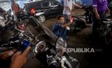 Petugas Dinas Lingkungan Hidup DKI Jakarta menguji emisi kendaraan bermotor di bengkel Dinas Lingkungan Hidup, Cililitan, Jakarta, Kamis (4/11). Dinas Lingkungan Hidup DKI Jakarta melayani uji emisi kendaraan bermotor gratis untuk sepeda motor maupun mobil yang dibuka setiap Selasa dan Kamis untuk menekan tingkat pencemaran udara di Ibu Kota. Banyaknya warga yang ingin uji emisi mengakibatkan antrean panjang dan dibuka sejak pukul 08.00 WIB hingga pukul 14.00 WIB.Prayogi/Republika. (FOTO : Prayogi/Republika.)