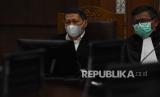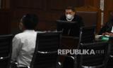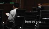 REPUBLIKA.CO.ID, JAKARTA -- Terdakwa mantan Direktur Utama PT Pelindo II Richard Joost Lino (kanan) mendengarkan keterangan saksi ahli pada sidang lanjutan kasus korupsi pengadaan tiga unit Quay Container Crane (QCC) di PT Pelindo II pada tahun 2010, di Pengadilan Tipikor, Jakarta, Kamis (4/11/2021). Sidang beragenda mendengarkan keterangan dua saksi ahli yang dihadirkan pihak terdakwa.