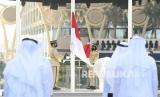 Bendera Merah Putih dikibarkan saat pembukaan National Day Indonesia di Al Wasl Plaza, Expo 2020 Dubai, Dubai, Uni Emirat Arab, Kamis (4/11/2021). Paviliun Indonesia menggelar National Day pada ajang internasional Expo 2020 Dubai dengan mengusung tema Land of Diversity - Folklore Performance. (FOTO : Antara/Hafidz Mubarak A)