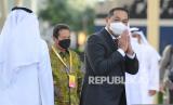 Menteri Perdagangan Muhammad Lutfi (kanan) menghadiri pembukaan National Day Indonesia di Al Wasl Plaza, Expo 2020 Dubai, Dubai, Uni Emirat Arab, Kamis (4/11/2021). Paviliun Indonesia menggelar National Day pada ajang internasional Expo 2020 Dubai dengan mengusung tema Land of Diversity - Folklore Performance. (FOTO : Antara/Hafidz Mubarak A)