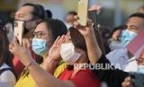 Warga Negara Indonesia menyaksikan pembukaan National Day Indonesia di Al Wasl Plaza, Expo 2020 Dubai, Dubai, Uni Emirat Arab, Kamis (4/11/2021). Paviliun Indonesia menggelar National Day pada ajang internasional Expo 2020 Dubai dengan mengusung tema Land of Diversity - Folklore Performance. (FOTO : Antara/Hafidz Mubarak A)