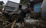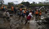 REPUBLIKA.CO.ID,BATU -- Tim SAR gabungan bersama relawan dan warga membersihkan endapan lumpur akibat banjir bandang di Bulukerto, Kota Batu, Jawa Timur, Jumat (5/11/2021).