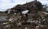 Tim SAR gabungan bersama warga membersihkan puing-puing rumah yang rusak akibat banjir bandang di Bulukerto, Kota Batu, Jawa Timur, Jumat (5/11/2021). Berdasarkan laporan sementara dari BPBD Kota Batu hingga hari kedua pencarian korban banjir bandang, tim SAR berhasil menemukan enam jenazah korban dan tiga korban masih dalam proses pencarian. (FOTO : ANTARA FOTO/Zabur Karuru/aww.)