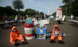 Sejumlah aktivis lingkungan menggelar aksi perlawanan iklim di Patung Kuda, Jakarta, Jumat (5/11). Mereka meminta pemerintah melakukan aksi nyata untuk menghentikan krisis iklim global.Prayogi/Republika. (FOTO : Prayogi/Republika.)