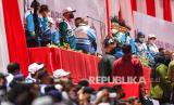 Wakil Presiden Maruf Amin (keempat kanan) hadir dalam upacara pembukaan Peparnas Papua di Stadion Mandala, Jayapura, Papua, Jumat (5/11/2021). Pembukaan Peparnas Papua tersebut bertemakan Cahaya Kemenangan Dari Timur Papua. (FOTO : Antara/Raisan Al Farisi)