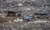 Sejumlah warga beraktivitas di atas tumpukan sampah di TPA Sarimukti, Cipatat, Kabupaten Bandung Barat, Ahad (7/11). Operasional alat berat untuk kegiatan sanitary landfil (menumpuk, memadatkan dan menimbun sampah dengan tanah) di tempat pembuangan akhir (TPA) Sarimukti terganggu akibat krisis pasokan bahan bakar minyak (BBM) sejak Jumat (5/11). Hal tersebut mengakibatkan terhambatnya proses bongkar muat sampah dan pengangkutan sampah di wilayah Bandung Raya. (FOTO : REPUBLIKA/ABDAN SYAKURA)
