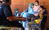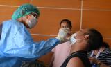 Petugas medis mengambil sampel cairan hidung anggota kontingen cabor panahan saat tes usap antigen di Hotel Gamalama, Jayapura, Papua, Ahad (7/11/2021). Pengecekan kesehatan di hotel lokasi kontingen menginap tersebut untuk mengantisipasi penyebaran COVID-19 jelang pertandingan cabor penahan Peparnas Papua. (FOTO : ANTARA/Wahyu Putro A)