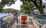 REPUBLIKA.CO.ID, BANDUNG -- Pedagang merapikan kiosnya di kawasan Teras Cihampelas, Jalan Cihampelas, Kota Bandung, Senin (8/11). Pemerintah Kota Bandung berencana akan mereaktivasi salah satu destinasi wisata kota Teras (skywalk) Cihampelas pada akhir tahun 2021. Hal tersebut dilakukan guna memulihkan perekonomian para pelaku Usaha Mikro Kecil Menengah (UMKM) yang terdampak pandemi Covid-19. Foto