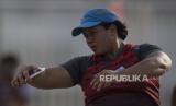 REPUBLIKA.CO.ID,JAYAPURA -- Atlet lempar cakram Jawa Tengah Famini melakukan lemparan pada nomor lempar cakram putri klasifikasi F56 di Kompleks Stadion Lukas Enembe, Kabupaten Jayapura, Papua, Senin (8/11/2021).