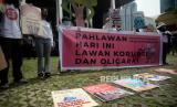 REPUBLIKA.CO.ID, JAKARTA -- Sejumlah aktivis yang tergabung dalam Gerakan #BersihkanIndonesia melakukan aksi damai kreatif dalam rangka menyambut Hari Pahlawan di depan Gedung Merah Putih KPK, Jakarta, Selasa (9/11).
