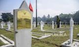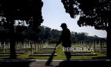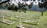 REPUBLIKA.CO.ID, BANDUNG -- Pekerja membersihkan makam di area Taman Makam Pahlawan Cikutra, Kota Bandung, Selasa (9/11). Pembersihan makam pahlawan tersebut dilakukan untuk menyambut dan memperingati Hari Pahlawan pada 10 November mendatang.