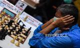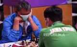 REPUBLIKA.CO.ID,JAYAOPURA -- Pecatur Papua Cerdas Barus menghadapi pecatur Jawa Timur Muhlis dalam pertandingan babak kedua catur standar TRW Peparnas XVI Papua di Hotel Sahid, Jayapura, Papua, Selasa (9/11/2021).