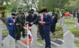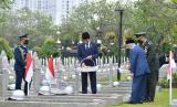 REPUBLIKA.CO.ID, JAKARTA -- Presiden Joko Widodo (Jokowi) memimpin upacara ziarah nasional untuk memperingati hari pahlawan nasional tahun 2021 di Taman Makam Pahlawan (TMP) Kalibata, Jakarta, Rabu (10/11). Upacara digelar pada pukul 08.11 WIB dan dihadiri oleh sejumlah pejabat negara.