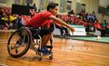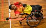 REPUBLIKA.CO.ID,JAYAPURA -- Pebulutangkis DKI Ade Rudyanto mengembalikan kok ke arah lawannya pebulutangkis Jawa Barat I Shadan pada final bulutangkis klasifikasi TPa WH1 Peparnas Papua di GOR Cendrawasih, Kota Jayapura, Papua, Rabu (10/11/2021).