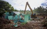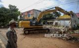 REPUBLIKA.CO.ID, BATAM -- Petugas menggunakan alat berat merobohkan sebuah bangunan permukiman yang berada di sepanjang Jalan Simpang Batu Besar, Batam, Kepulauan Riau, Kamis (11/11/2021). Pembongkaran tersebut untuk proyek penataan dan pelebaran jalan guna mengatasi kemacetan. ANTARA FOTO/Teguh Prihatna/tom.