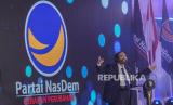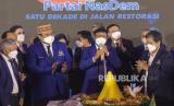 REPUBLIKA.CO.ID, Presiden Joko Widodo menghadiri peringatan HUT ke-10 Partai NasDem di Gedung Akademi Bela Negara (ABN) Partai NasDem, Jakarta, Kamis (11/11/2021). Acara tersebut mengusung tema Satu Dekade di Jalan Restorasi.