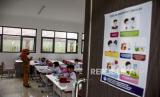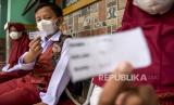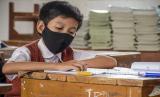 Sejumlah pelajar mengikuti pembelajaran tatap muka terbatas (PTMT) di SDN 084 Cikadut, Jalan Jamaras, Kota Bandung, Jumat (12/11). Pemerintah Kota Bandung melalui Dinas Pendidikan Kota Bandung menyatakan, PTMT di 54 sekolah yang sempat ditutup sementara akibat persentase kasus Covid-19 diatas angka lima persen dari hasil tes acak PCR akan digelar kembali. Hal itu mengingat kondisi mayoritas pelajar dan guru yang telah sembuh serta proses 3T (tracing, testing dan treatment) yang hampir selesai. Foto: Republika/Abdan Syakura (FOTO : REPUBLIKA/ABDAN SYAKURA)