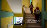 Sejumlah pelajar berjalan menuju ruang kelas di SDN 084 Cikadut, Jalan Jamaras, Kota Bandung, Jumat (12/11). Pemerintah Kota Bandung melalui Dinas Pendidikan Kota Bandung menyatakan, PTMT di 54 sekolah yang sempat ditutup sementara akibat persentase kasus Covid-19 diatas angka lima persen dari hasil tes acak PCR akan digelar kembali. Hal itu mengingat kondisi mayoritas pelajar dan guru yang telah sembuh serta proses 3T (tracing, testing dan treatment) yang hampir selesai. Foto: Republika/Abdan Syakura (FOTO : REPUBLIKA/ABDAN SYAKURA)