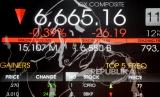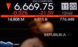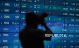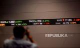 Karyawan mengamati layar yang menampilkan pergerakan saham di Bursa Efek Indonesia, Jakarta, Jumat (12/11). Indeks harga saham gabungan (IHSG) melemah 0,60 atau 40,28 poin ke 6.651,05 pada akhir perdagangan.Prayogi/Republika (FOTO : Prayogi/Republika.)