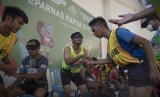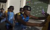 REPUBLIKA.CO.ID,JAYAPURA -- Sejumlah pelari beserta pemandunya bersiap mengikuti babak kualifikasi lari 200 meter klasifikasi T11 Peparnas Papua di Stadion Lukas Enembe, Kabupaten Jayapura, Papua, Jumat (12/11/2021).