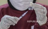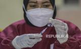 Petugas kesehatan bersiap menyuntikkan vaksin COVID-19 kepada warga di Gelanggang Remaja Makassar, Jakarta, Jumat (12/11/2021). Pemerintah menargetkan vaksinasi COVID-19 mencapai 300 juta dosis pada akhir 2021, yang hingga November 2021 berdasarkan data dari Kementerian Kesehatan (Kemenkes) vaksinasi nasional telah mencapai 200 juta dosis vaksinasi, untuk vaksinasi dosis pertama sebesar 127,3 juta dosis atau 61 persen, dan untuk dosis kedua mencapai 80,9 juta dosis atau 38 persen. (FOTO : ANTARA/Galih Pradipta)