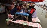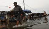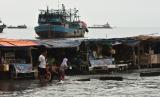 REPUBLIKA.CO.ID,JAKARTA -- Anak-anak bermain air di Pelabuhan Kali Adem yang terkena banjir rob di Jakarta, Jumat (12/11/2021). Banjir rob yang melanda kawasan tersebut sejak sepekan kemarin mulai berangsur surut.