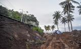 REPUBLIKA.CO.ID, SEGINGGI -- Warga berdiri dekat tebing jalan yang longsor di kawasan wisata Senggigi, Kecamatan Batulayar, Lombok Barat, NTB, Sabtu (13/11/2021). Longsor yang terjadi pada Kamis (11/11) malam saat hujan lebat tersebut menyebabkan jalan wisata Senggigi amblas sepanjang sekitar 25 meter dengan kedalaman 10 meter.