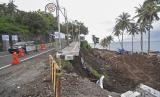 Jalan wisata Senggigi amblas sepanjang sekitar 25 meter dengan kedalaman 10 meter. .