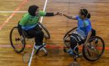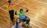 REPUBLIKA.CO.ID, JAYAPURA -- Pebulu tangkis Jawa Barat Hijrah Yanti mengembalikan bola ke arah lawannya pebulu tangkis Jawa Barat Sri Maryati pada final bulu tangkis putri klasifikasi WH 1 Peparnas Papua di Gor Cendrawasih, Jayapura, Papua, Sabtu (13/11/2021). Hijrah Yanti berhasil meraih medali emas setelah menang dengan skor 21-16, 21-13.