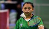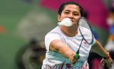 Pebulu tangkis Riau Leani Ratri Oktila mengembalikan bola ke arah lawannya pebulu tangkis Jawa Timur Halimatus Sadiyah pada final bulu tangkis putri klasifikasi SL 4 Peparnas Papua di Gor Cendrawasih, Jayapura, Papua, Sabtu (13/11/2021). Leani Ratri Oktila berhasil meraih medali emas setelah menang dengan skor 21-16, 21-15. (FOTO : ANTARA/Raisan Al Farisi)