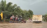 REPUBLIKA.CO.ID, SEKADAU -- Sejumlah kendaraan melintasi jalan nasional yang terendam banjir di ruas jalan Kabupaten Sekadau, Kalimantan Barat, Jumat (12/11/2021). Tingginya intensitas hujan yang terjadi selama tiga pekan terakhir di wilayah hulu Kalbar tersebut mengakibatkan sejumlah kabupaten di daerah terendam banjir setinggi 50-100 cm.
