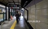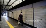 REPUBLIKA.CO.ID,JAKARTA -- Pejalan kaki melintas di dekat kios pedagang yang merupakan salah satu bagian dari penataan kawasan Stasiun Gondangdia, Jakarta, Senin (15/11).