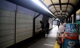 Petugas mengecek kios pedagang yang merupakan salah satu bagian dari penataan kawasan Stasiun Gondangdia, Jakarta, Senin (15/11). Sebanyak 80 kios telah selesai dibangun untuk para pedagang di kawasan sekitar stasiun agar terlihat lebih rapi dan modern.Prayogi/Republika. (FOTO : Prayogi/Republika.)
