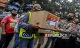 REPUBLIKA.CO.ID, BOGOR -- Polisi berbincang dengan Pak Ogah yang menerima bantuan sosial saat Operasi Zebra Lodaya 2021 di Jalan Raya Pajajaran, Kota Bogor, Jawa Barat, Senin (15/11). Satlantas Polresta Bogor Kota melaksanakan Operasi Zebra Lodaya 2021 mulai Senin (15/11) hingga Ahad (28/11), dengan menekankan giat preventif dan sosial sehingga tidak akan melakukan penilangan. Republika