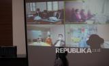 REPUBLIKA.CO.ID, JAKARTA -- Terdakwa Gubernur nonaktif Sulawesi Selatan Nurdin Abdullah (kanan) berjalan menuju mobil tahanan usai menjalani sidang Tuntutan secara virtual di Gedung Merah Putih KPK, Jakarta, Senin (15/11/2021). Nurdin Abdullah dituntut 6 tahun penjara ditambah denda Rp500 juta subsider 6 bulan kurungan karena dinilai terbukti menerima suap sebesar Rp13,812 miliar terkait dugaan suap dan gratifikasi. ANTARA