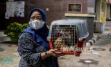 Warga membawa kucing yang telah disuntik vaksin rabies di halaman Kantor Kelurahan Kebon Baru, Tebet, Jakarta, Selasa (16/11). Sudin KPK Kota Administrasi Jakarta Selatan Kecamatan Tebet menyediakan 250 dosis vaksin rabies secara gratis sebagai bentuk upaya untuk mewujudkan Ibu Kota bebas rabies pada 2022. Republika/Putra M. Akbar (FOTO : Republika/Putra M. Akbar)