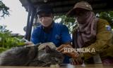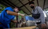 REPUBLIKA.CO.ID,JAKARTA -- Petugas menyuntikan vaksin rabies ke hewan peliharaan di halaman Kantor Kelurahan Kebon Baru, Tebet, Jakarta, Selasa (16/11).
