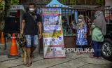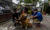 Warga membawa anjing peliharaanya yang telah disuntik vaksin rabies di halaman Kantor Kelurahan Kebon Baru, Tebet, Jakarta, Selasa (16/11). Sudin KPK Kota Administrasi Jakarta Selatan Kecamatan Tebet menyediakan 250 dosis vaksin rabies secara gratis sebagai bentuk upaya untuk mewujudkan Ibu Kota bebas rabies pada 2022. Republika/Putra M. Akbar (FOTO : Republika/Putra M. Akbar)