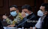 Terdakwa mantan pejabat pajak Angin Prayitno Aji (kiri) saat menjalani sidang lanjutan perkara dugaan suap terkait pengurusan nilai pajak Direktorat Jenderal Pajak Kementerian Keuangan di Pengadilan Tipikor, Jakarta, Selasa (16/11). Sidang tersebut beragendakan mendengarkan keterangan saksi yang dihadirkan Jaksa Penuntut Umum (JPU) KPK. Jaksa KPK mendakwa dua mantan pejabat pajak Angin Prayitno Aji dan Dadan Ramdani menerima suap sebesar Rp 15 miliar dan SGD 4 juta atau sekitar Rp 42 miliar. Republika/Thoudy Badai (FOTO : Republika/Thoudy Badai)