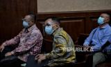Terdakwa mantan pejabat pajak Angin Prayitno Aji (tengah) bersama Dadan Ramdani (kiri) bersiap menjalani sidang lanjutan perkara dugaan suap terkait pengurusan nilai pajak Direktorat Jenderal Pajak Kementerian Keuangan di Pengadilan Tipikor, Jakarta, Selasa (16/11). Sidang tersebut beragendakan mendengarkan keterangan saksi yang dihadirkan Jaksa Penuntut Umum (JPU) KPK. Jaksa KPK mendakwa dua mantan pejabat pajak Angin Prayitno Aji dan Dadan Ramdani menerima suap sebesar Rp 15 miliar dan SGD 4 juta atau sekitar Rp 42 miliar. Republika/Thoudy Badai (FOTO : Republika/Thoudy Badai)
