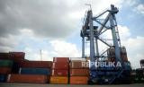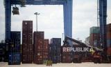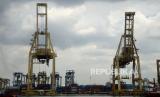REPUBLIKA.CO.ID, JAKARTA -- Suasana aktivitas bongkar muat di Terminal Petikemas Pelabuhan Tanjung Priok, Jakarta, Selasa (16/11).