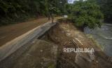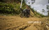 REPUBLIKA.CO.ID, HULU SUNGAI TENGAH -- Warga menggunakan roda dua melintas di jalan antardesa pascatanah longsor di Kecamatan Batang Alai Timur, Kabupaten Hulu Sungai Tengah, Kalimantan Selatan, Selasa (16/11/2021).