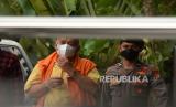 REPUBLIKA.CO.ID, JAKARTA -- Terdakwa kasus dugaan korupsi kegiatan fiktif agen PT Asuransi Jasindo (Persero) Kiagus Emil Fahmy Cornain (tengah) tiba untuk menjalani pemeriksaan di Gedung Merah Putih KPK, Jakarta, Selasa (16/11/2021). Kiagus Emil diperiksa sebagai saksi dalam perkara korupsi di PT Asuransi Jasindo.